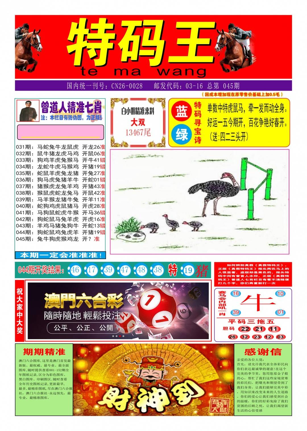 | 龙14.26.38 | 鸡09.21.33 | 牛05.17.41 | 虎04.16.28 |
